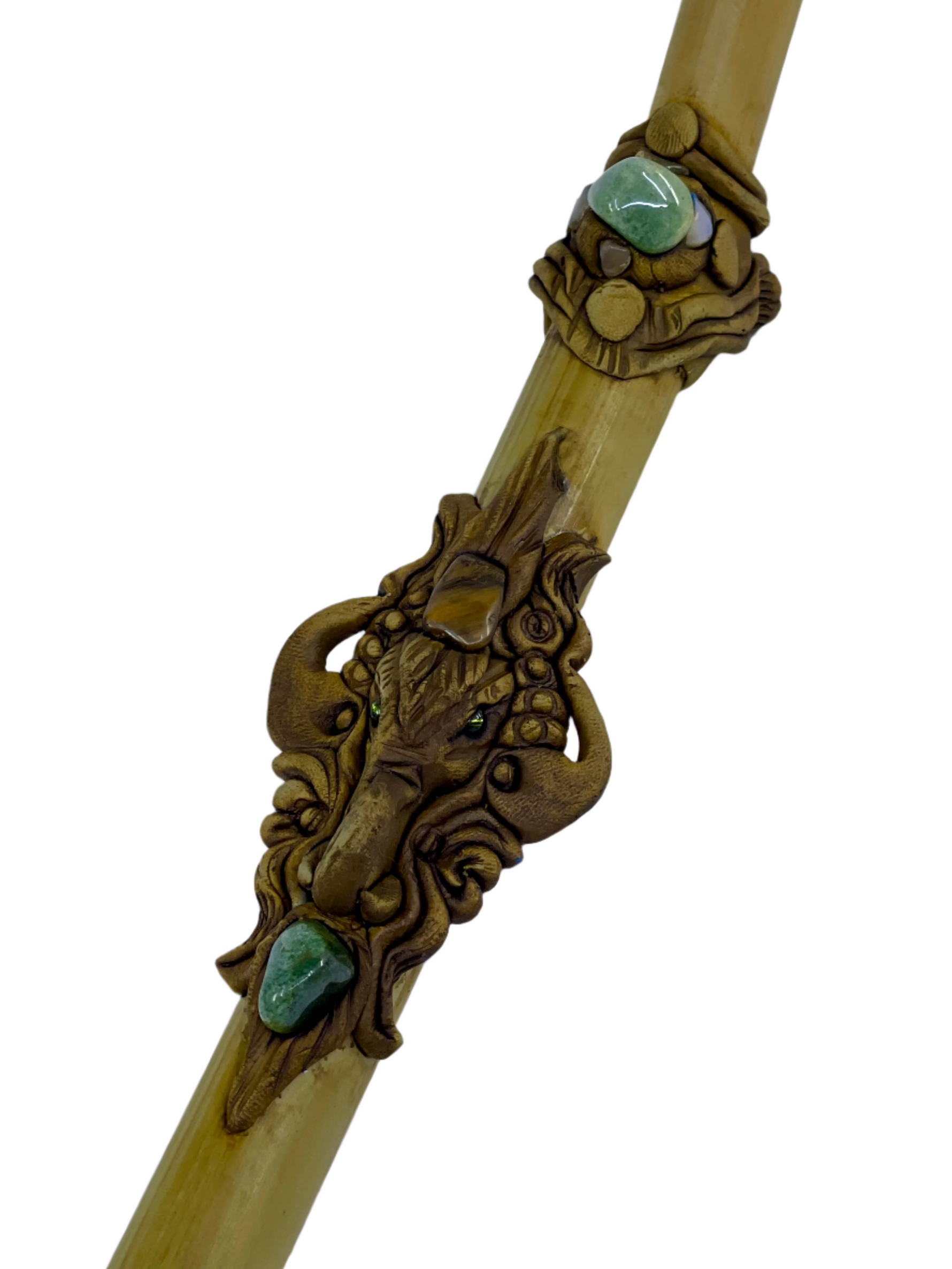 This exquisite tepi features a bamboo construction with a handcrafted clay Elephant Totem adorned with gemstones. Designed with a larger bamboo opening, these long tepis deliver a potent shamanic force with every use, ensuring a powerful and transformative experience. Embrace the ancient wisdom of the Elephant, also known as symbol of strength, stamina, and longevity .