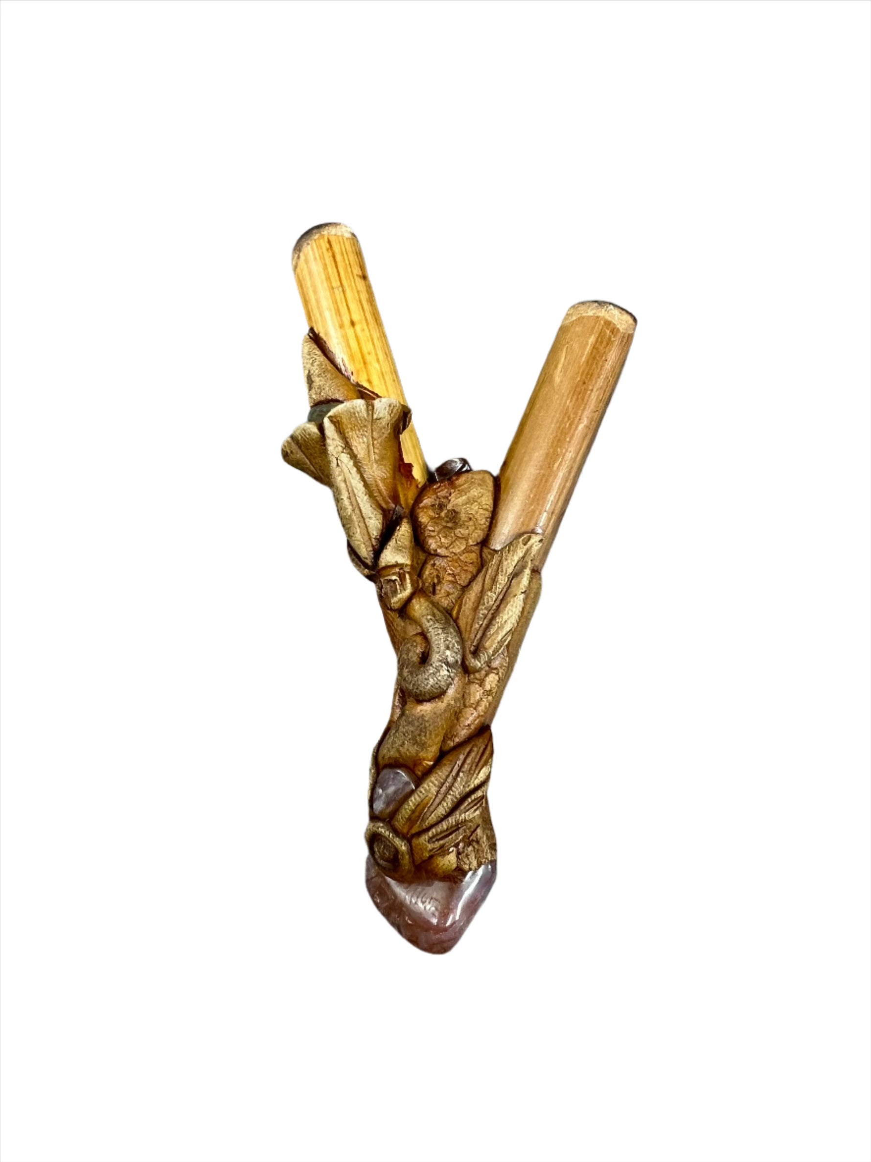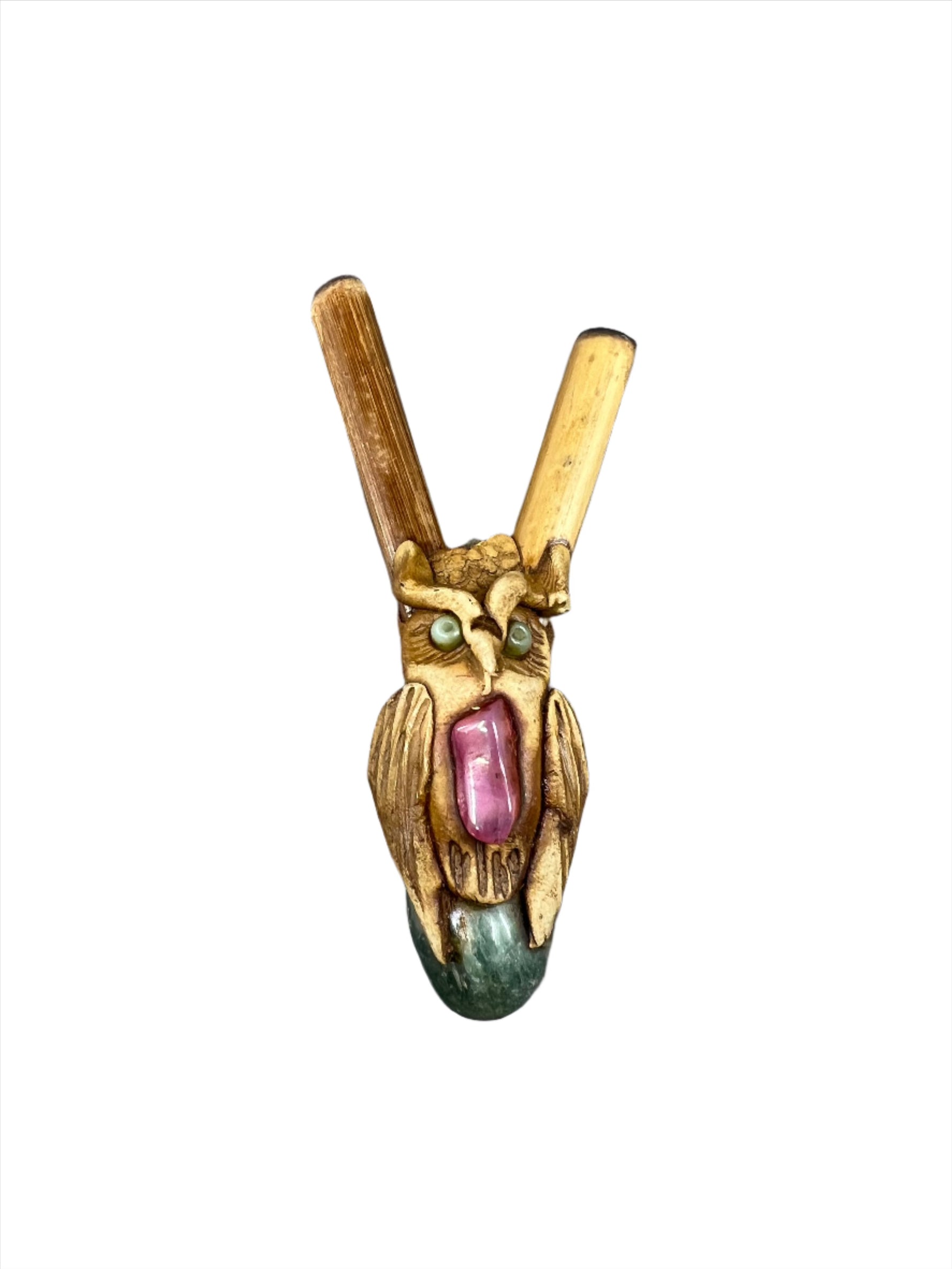 These beautiful and unique kuripes are durable, compact and have a powerful flow. They are made from bamboo, clay and adorned with different stones.