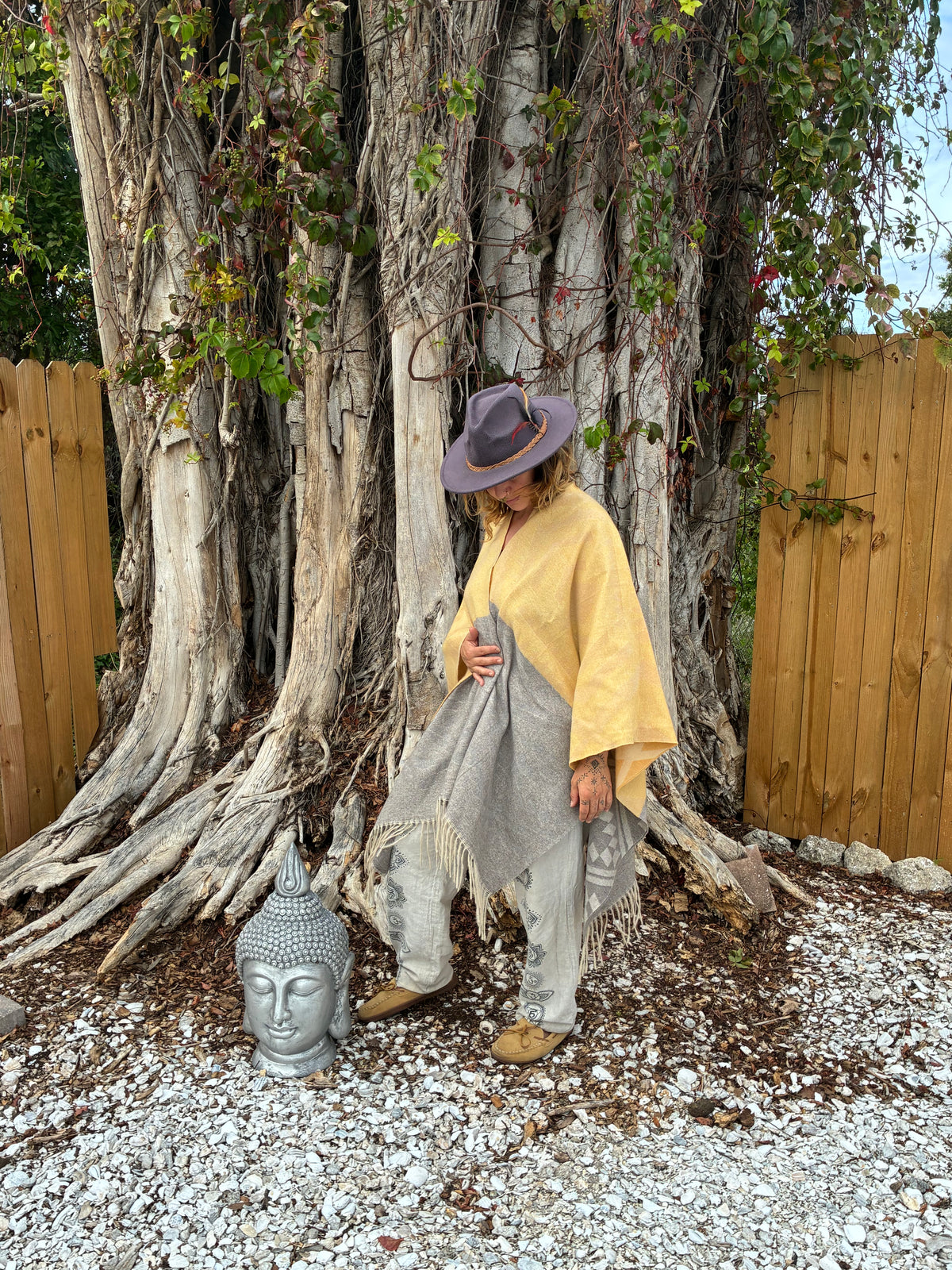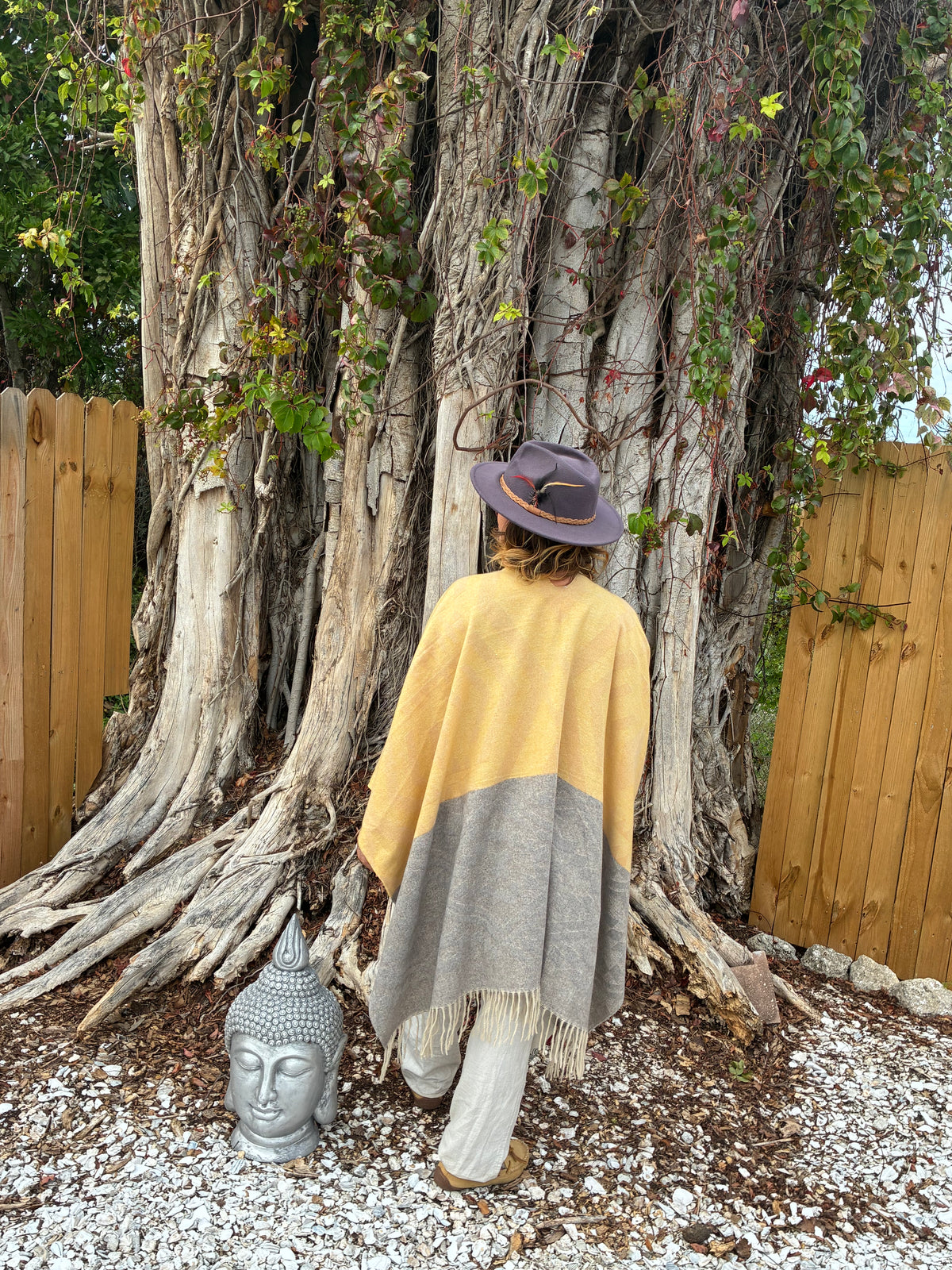 Authentic alpaca ruanas from Peru are a warm, soft poncho-like wrap made from alpaca wool featuring an open slit in the front offering cozy and effortless layering. Acts as a jacket, cardigan, or sweater, perfect for dressing up or down. The material is high-vibration, light-weight, ultra-soft, and hypoallergenic, handcrafted and designed for ease of movement and styling.