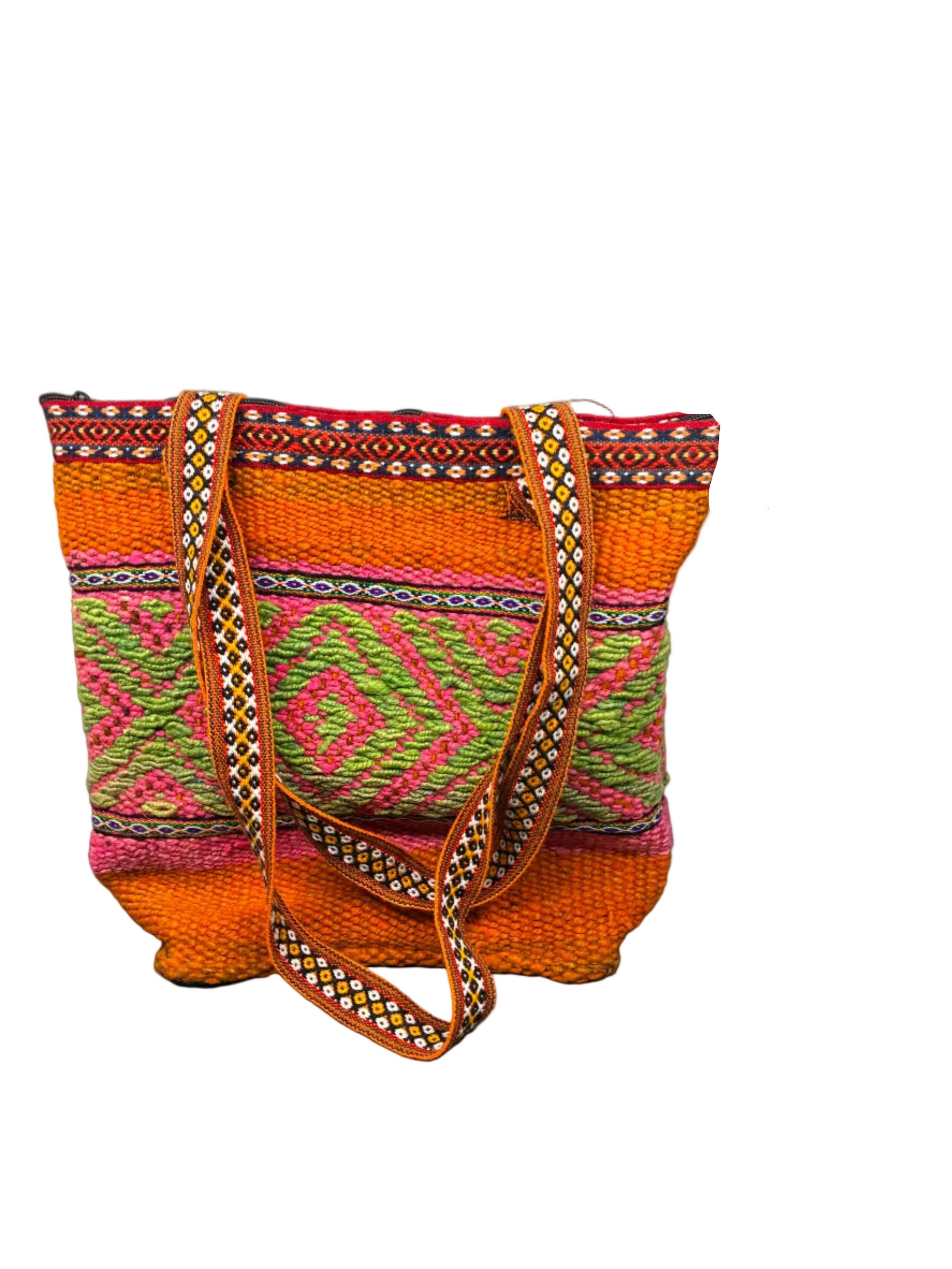 Hand woven, lined, and zipped Peruvian bag for carrying medicine and personal items.