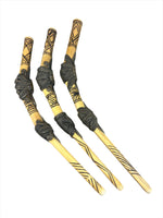 Discover the artistry of Sacred Kenê Art Tepis, crafted with care. Each Tepi is a unique masterpiece, made by talented local artists. Fashioned from bamboo and polymer clay, these Tepis are adorned with diverse ornamentation's, ensuring every piece is one-of-a-kind. While the design you receive may slightly vary from the image shown, rest assured the color and style will remain consistent. Embrace the beauty and craftsmanship of these exceptional pieces, knowing each one carries the essence of its creator.
