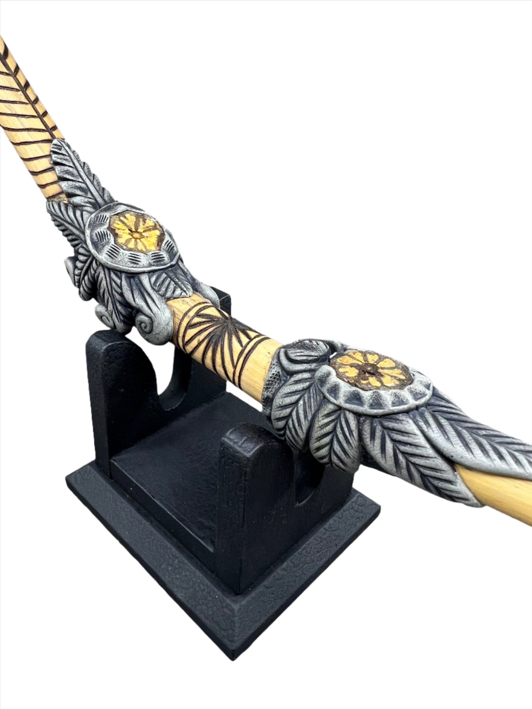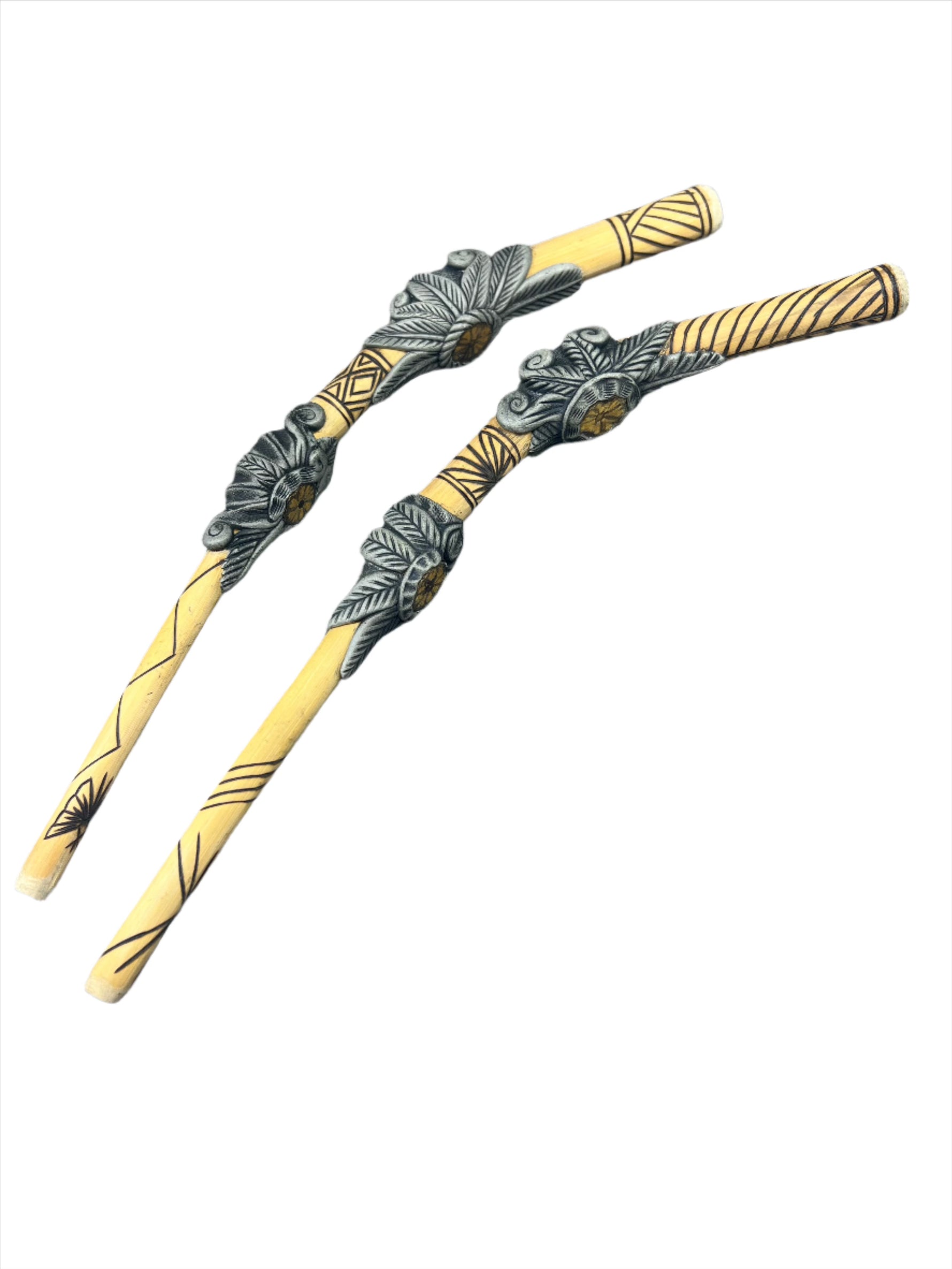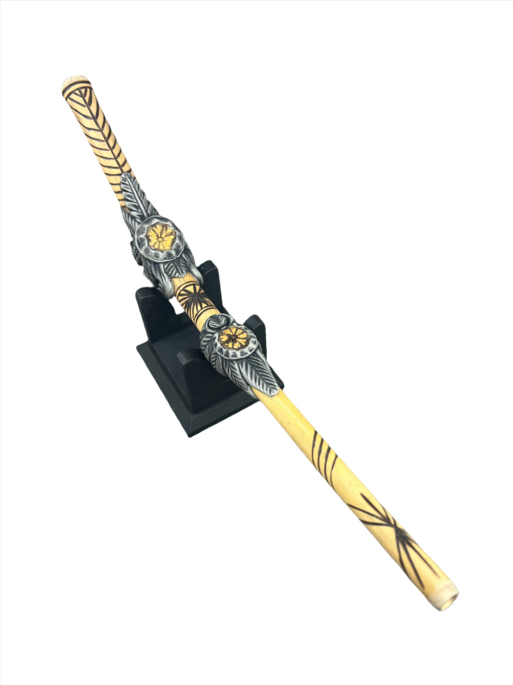 Experience the exquisite craftsmanship of Sacred Kenê Art Tepis, handcrafted by talented artists. Each Tepi is a unique work of art, made from bamboo and polymer clay, and decorated with various intricate ornamentation's. The design you receive may vary slightly from the pictured item, but the color and style will remain consistent. Embrace the authenticity and cultural heritage embedded in each piece, reflecting the true essence of its creator.
