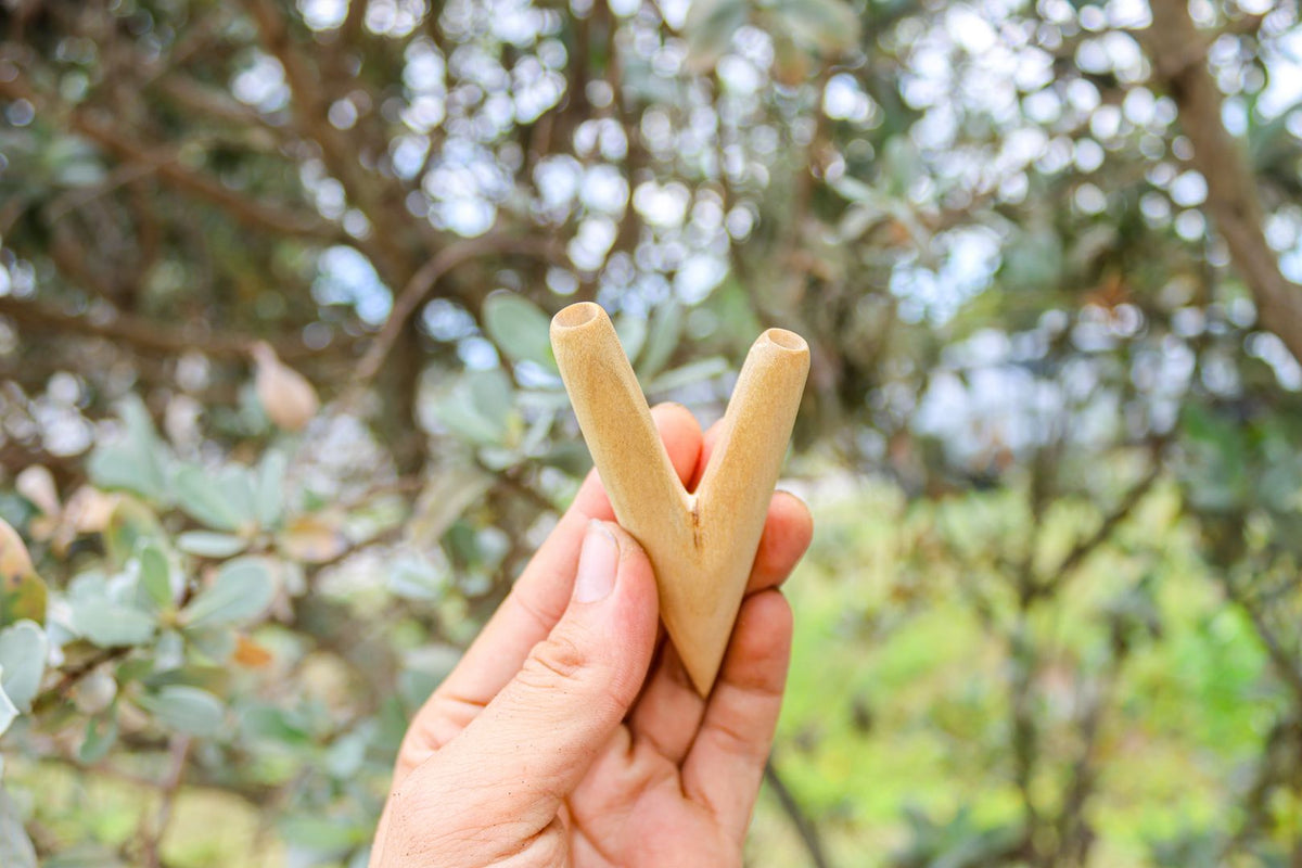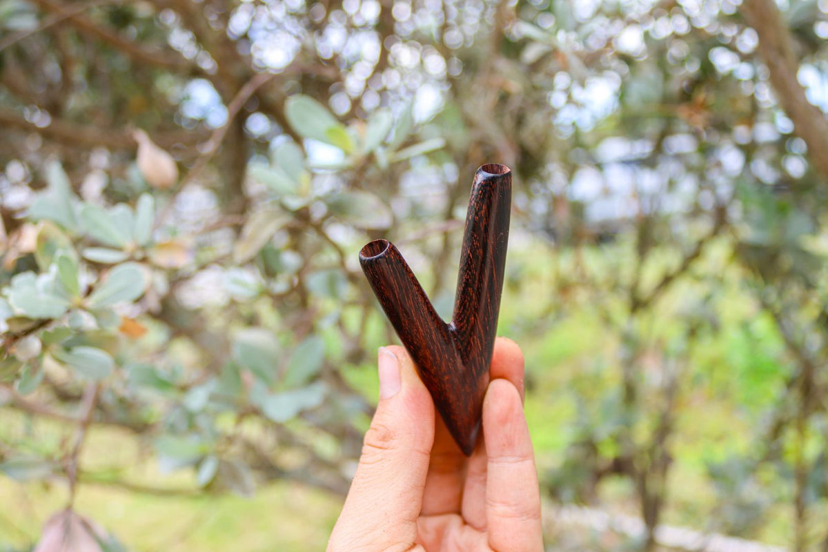 The kuripe's form flows seamlessly, revealing the artist's meticulous attention to detail. Every curve and contour has been expertly shaped to ensure ergonomic comfort, allowing for a graceful and intimate ritual experience. The wood's natural grain, brought to life through careful polishing and finishing, adds a touch of organic beauty, each unique pattern telling a story of its own.