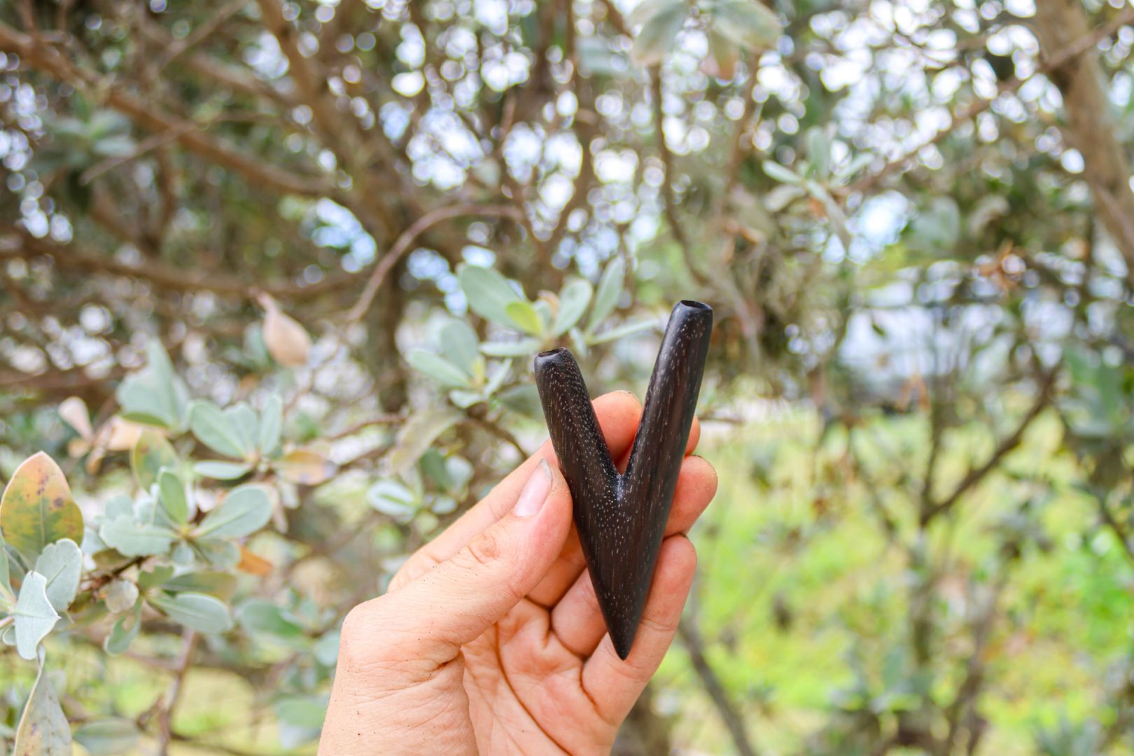 The artist's reverence for nature is evident in the choice of wood, carefully selected for its strength, durability, and aesthetic appeal. As you hold this kuripe in your hands, you can feel the essence of the tree from which it was born, as if connecting to the spirit of the forest itself. Its warm and earthy aroma further enhances the sensory journey, transporting you to a realm of tranquility and grounding.